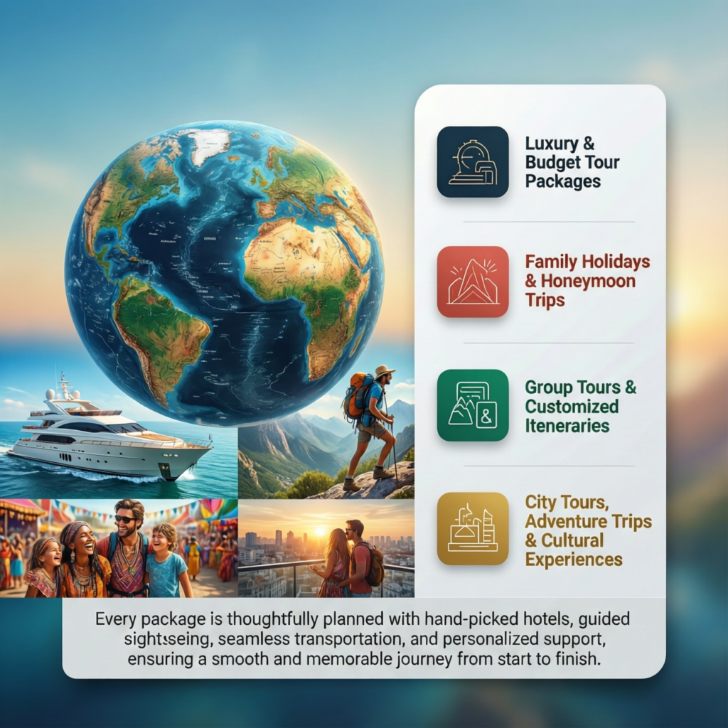 Every package is thoughtfully planned with hand-picked hotels, guided sightseeing, seamless transportation, and personalized support, ensuring a smooth and memorable journey from start to finish.