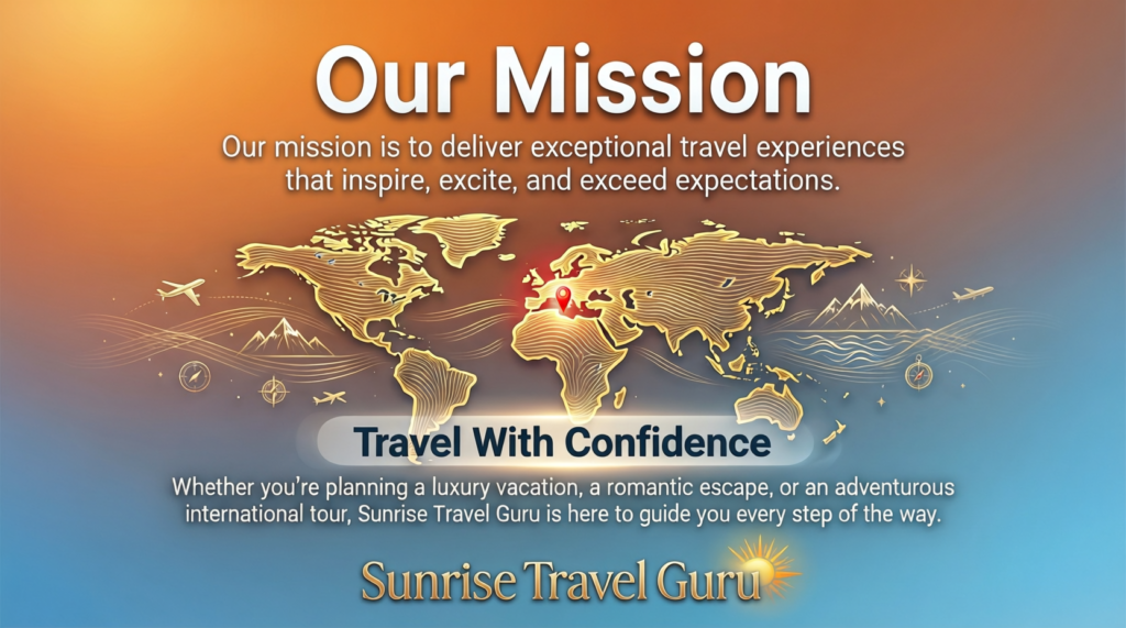 Whether you’re planning a luxury vacation, a romantic escape, or an adventurous international tour, Sunrise Travel Guru is here to guide you every step of the way.